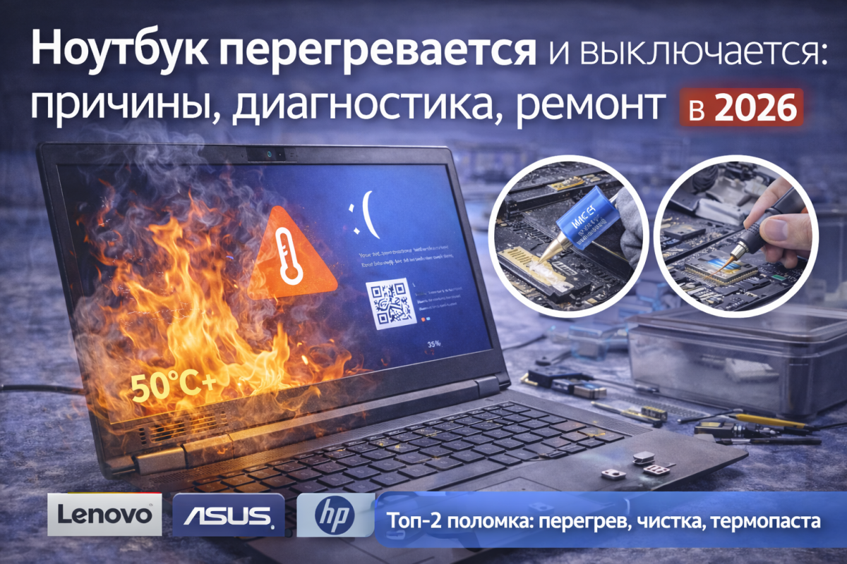Ноутбук перегревается и выключается: причины, диагностика, ремонт в 2026