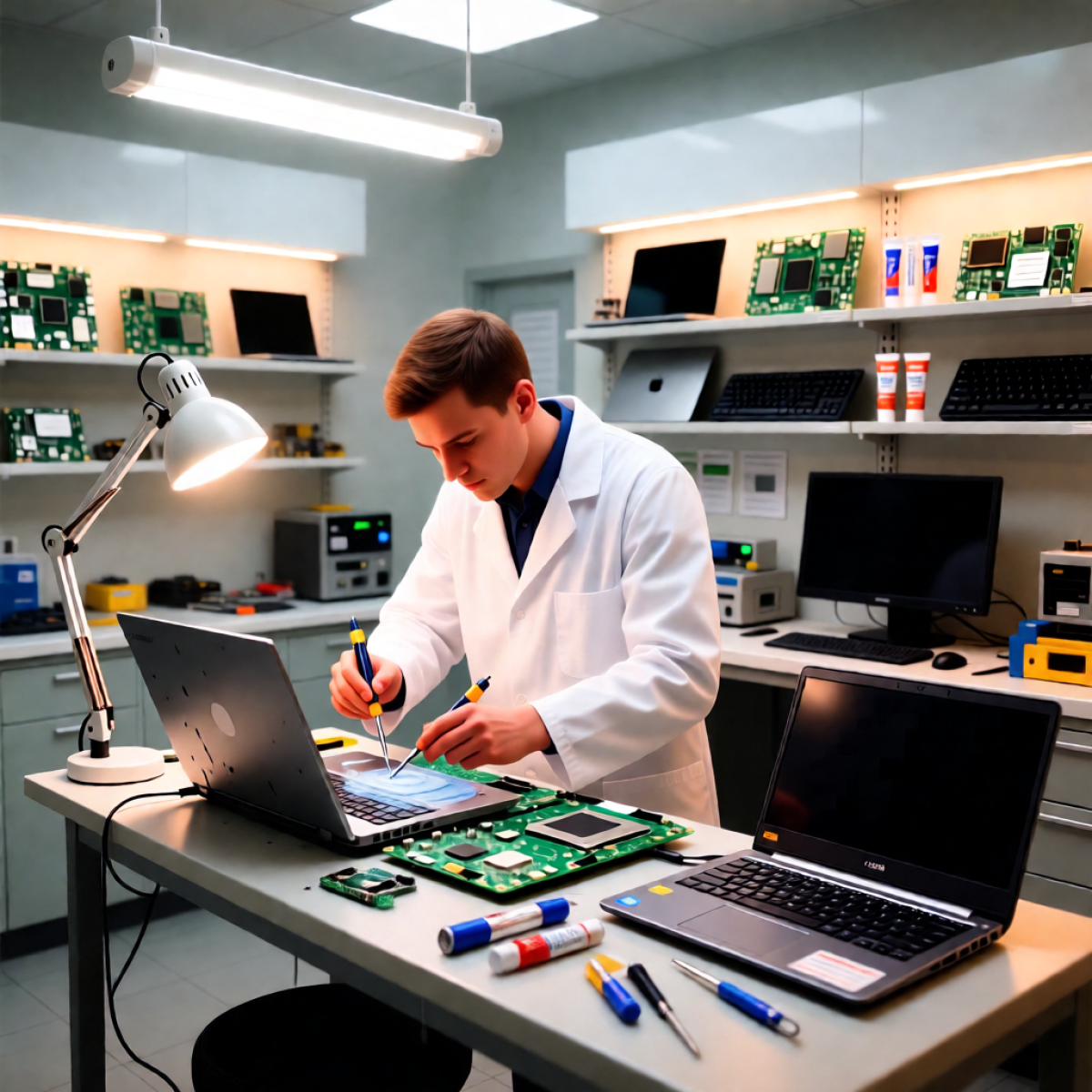 Ноутбук не включается, перегревается или залит жидкостью? Специалисты нашего сервисного центра быстро диагностируют и устранят проблемы с материнской платой, клавиатурой, экраном, разъемом питания и системой охлаждения для Lenovo, ASUS, HP, MacBook, MSI и др. Мы проводим чистку от пыли, замену термопасты, ремонт после залития и восстановление данных с гарантией качества.