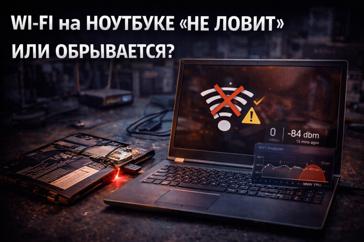 Если поиск пустой или "нет сетей" - начните с драйверов, но не затягивайте: перегрев убивает чип. Разберём причины, тесты и ремонт в СЕРСО.